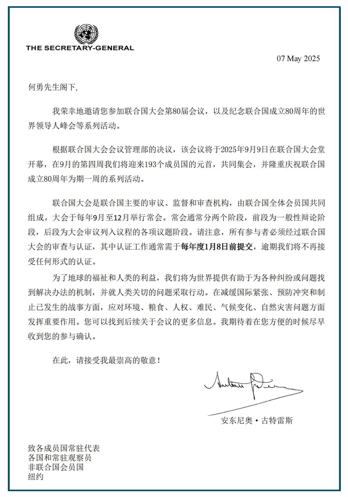 联合国特邀观察员、北京滑县企业商会会长何勇应邀出席第80届联合国大会暨联合国成立80周年纪念大会