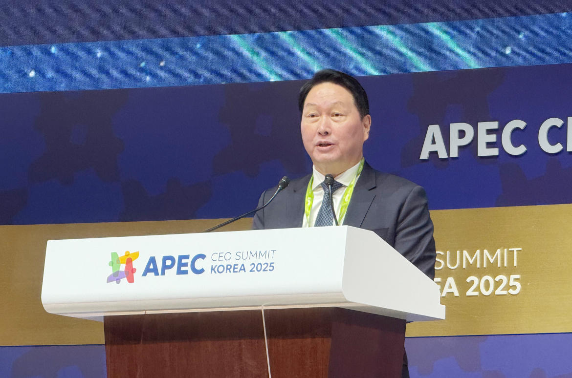 当地时间2025年10月29日,韩国总统李在明在2025年APEC韩国工商领导人峰会开幕式上发表讲话。