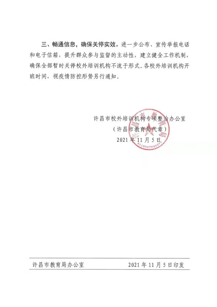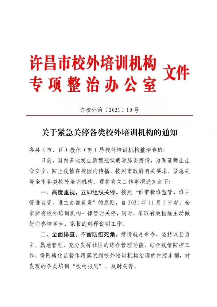 即日起,许昌市所有校外培训机构一律暂时关停!