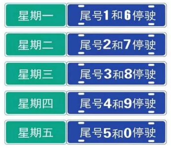 按机动车号牌(含临时号牌和外地号牌)最后一位阿拉伯数字(号牌末位为英文字母的,以字母前的最后一个数字为准),实行每日限制两个车牌尾号的车辆通行。