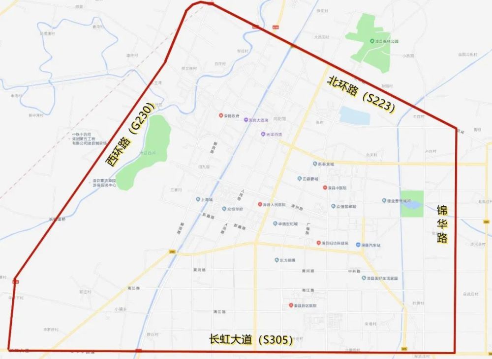 西环路(G230)以东、锦华路以西、北环路(S223)以南、长虹大道(S305)以北(不含上述四条道路)