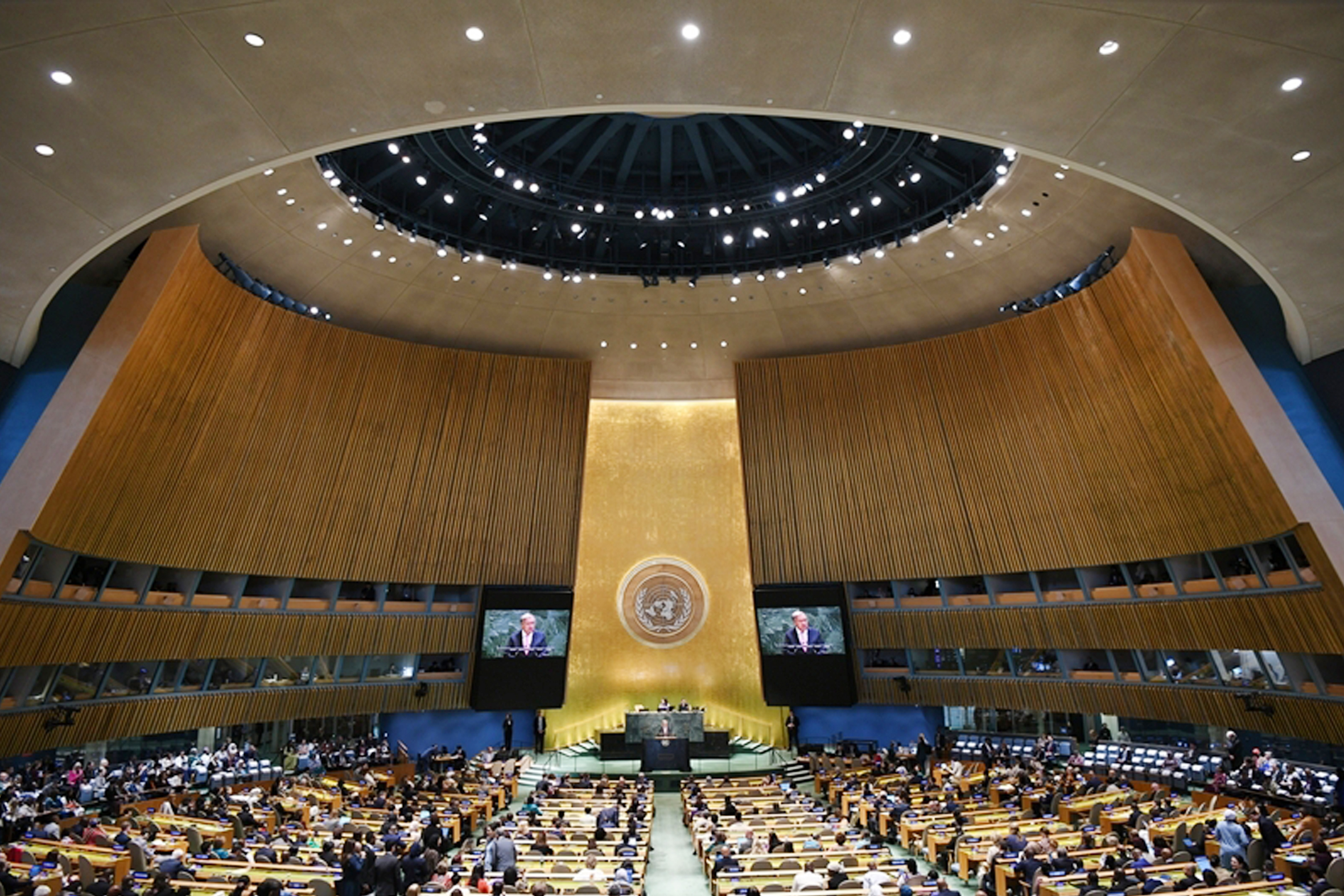 联合国秘书长古特雷斯在纪念北京世妇会30周年高级别会议上讲话。