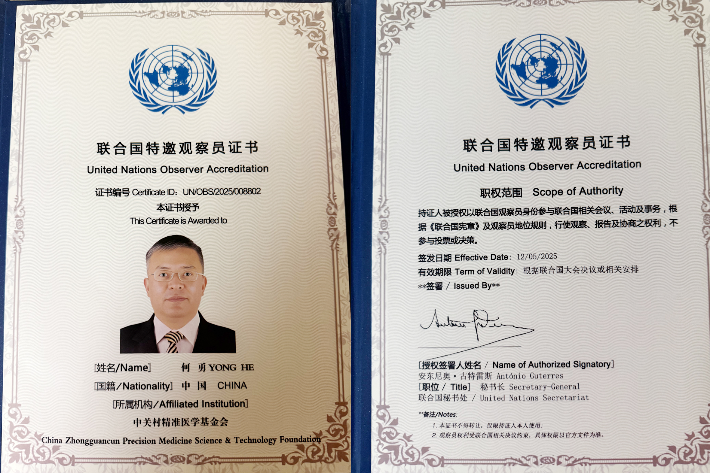 联合国特邀观察员证书